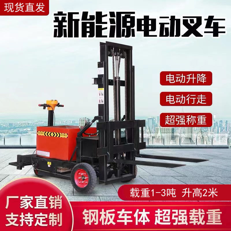 石家庄市小型电动叉车1吨站驾式2吨液压升高铲车全自动仓储堆高车